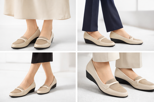LaVida Cream Low Wedge Heel Formal Loafers for Women