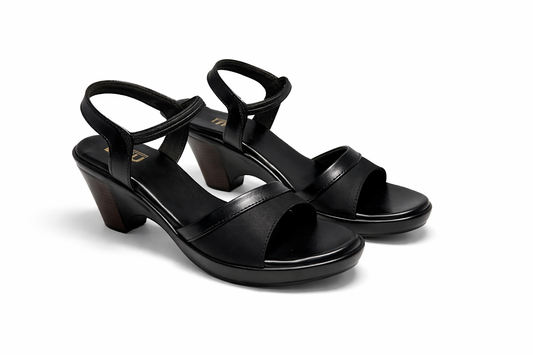LaVida Black Strappy Block Heel Sandals for Women - Office Wear