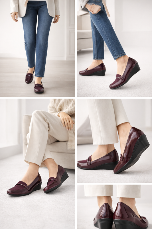 LaVida Cherry Red Low Wedge Heel Formal Loafers for Women